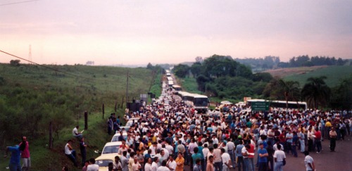 Ano em que levaram solidariedade aos trabalhadores sem terra em ocupação na cidade de Iperó (SP), que não tinham alimentos para suas famílias. O sindicato então, promoveu uma ação em que conseguiram entregar alimentos básicos. A tipografia do local dificultava o acesso e foi preciso fazer uma corrente humana para a passagem dos alimentos.