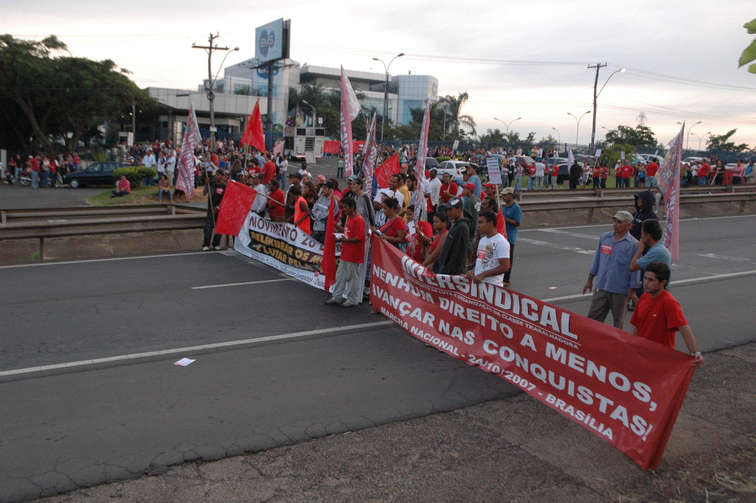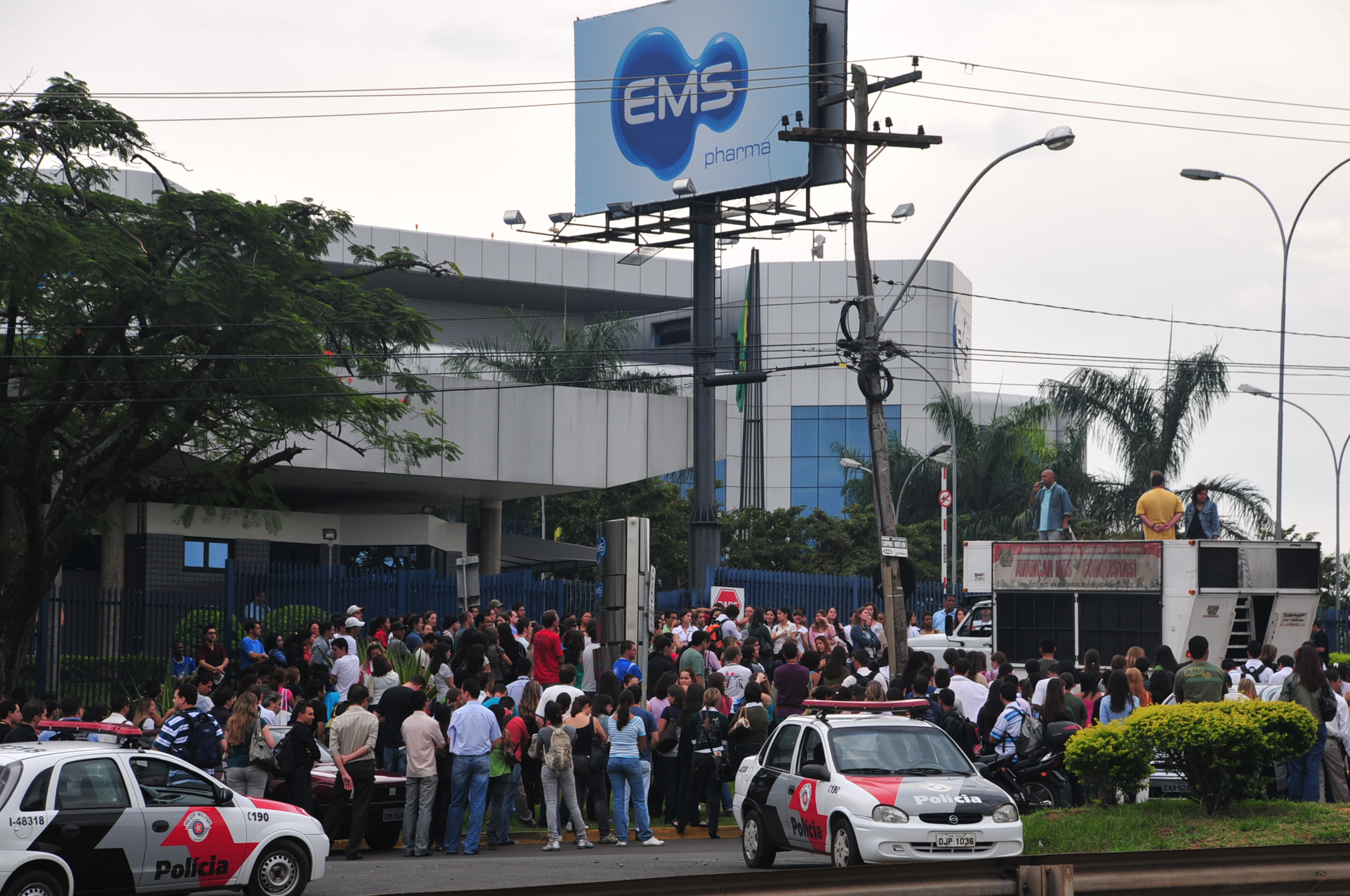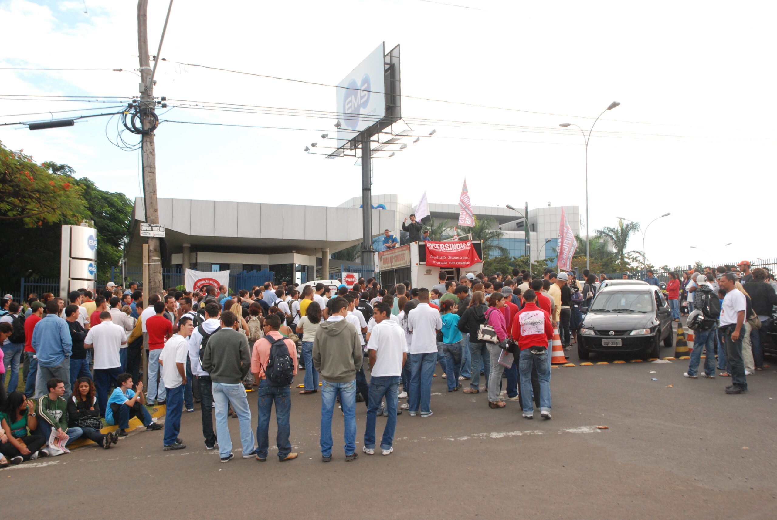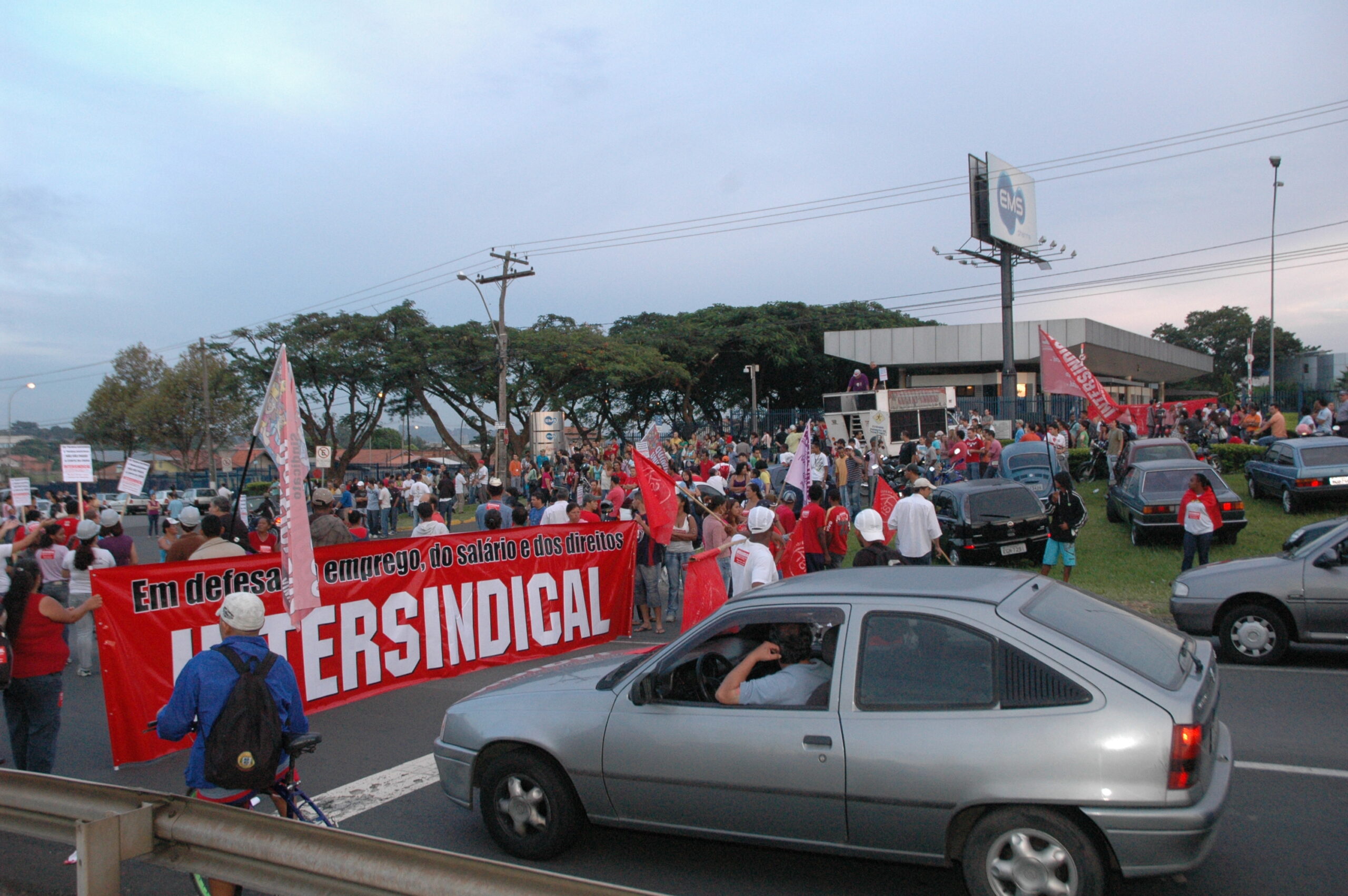 Em abril, o Sindicato realizou uma passeata com os trabalhadores da EMS, em Hortolândia, com o percurso ao redor da empresa para pressionar por maior aumento real no salário e pelo fim do trabalho aos sábados.