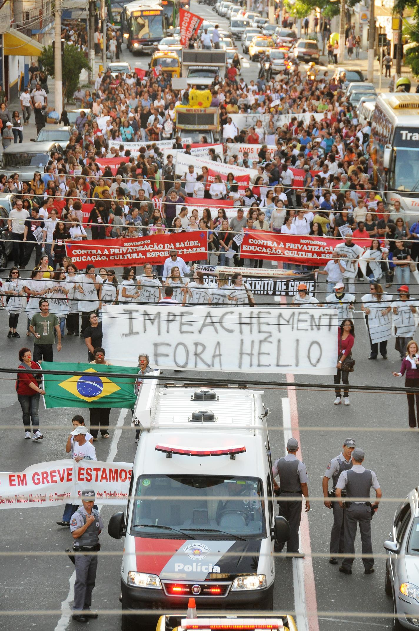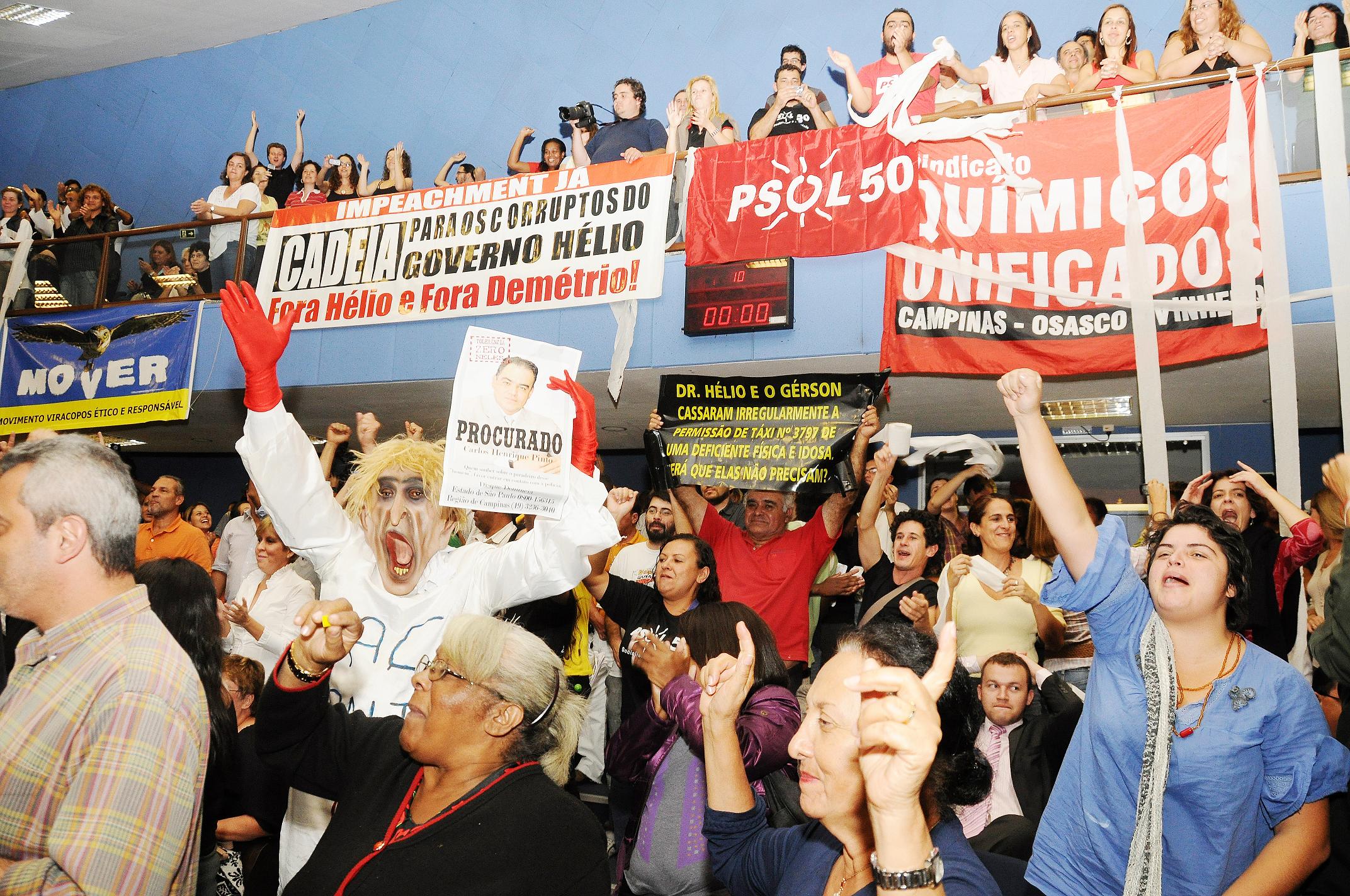 A cidade de Campinas, passou por um processo intenso de manifestações e o Sindicato participou das inúmeras atividades pedindo a saída do prefeito Hélio da Costa Santos, envolvido em corrupção no Caso Sanasa, após prisão de suspeitos e apuração das denúncias. Dr. Hélio foi cassado pela Câmara Municipal de Campinas e o vice-prefeito que tinha assumido o cargo, Demétrio Vilagra, também foi afastado por suspeita no mesmo caso. O presidente da Câmara de vereadores, Pedro Serafim Júnior, assumiu a prefeitura, mas por apenas 10 dias, uma decisão judicial recolocou Vilagra no comando. Com a Comissão Processante na Câmara em andamento, o impeachment foi aprovado. Com Vilagra também cassado, Serafim Junior voltou a reassumir a prefeitura.