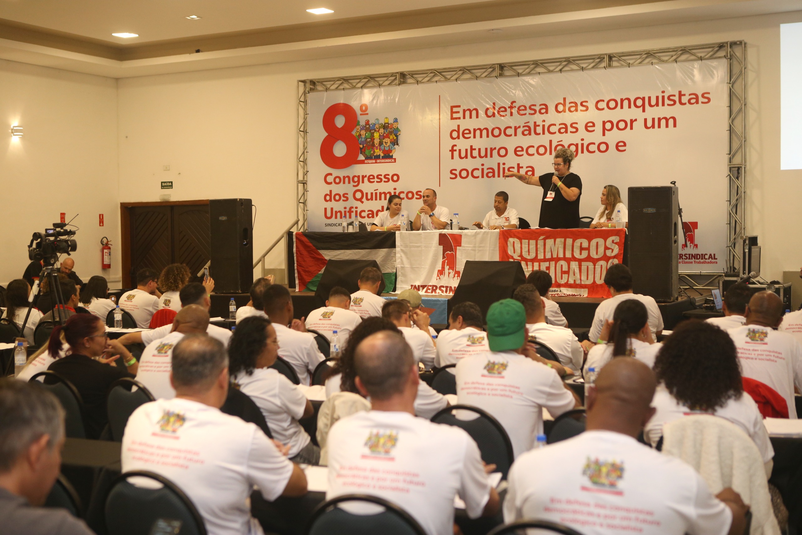O Sindicato realizou o 8º Congresso do Químicos Unificados entre os dias 1º e 3 de agosto, em que as delegadas e delegados aprovaram sua linha de ação e o plano de lutas para os próximos anos como a defesa do direito por um ambiente de trabalho digno e de respeito com todos e todas. O encontro também debateu a extrema direita e o fascismo, às opressões, uma forma diferente de relação de trabalho e renda com base nos valores da solidariedade, da cooperação, da preservação ambiental e dos direitos humanos.