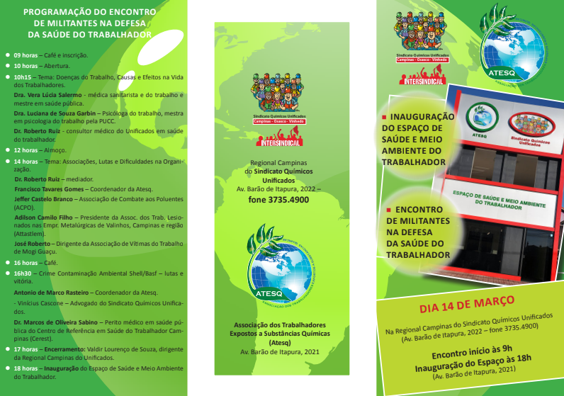 Folder de divulgação do Espaço Saúde e meio ambiente do trabalhador em março 2014